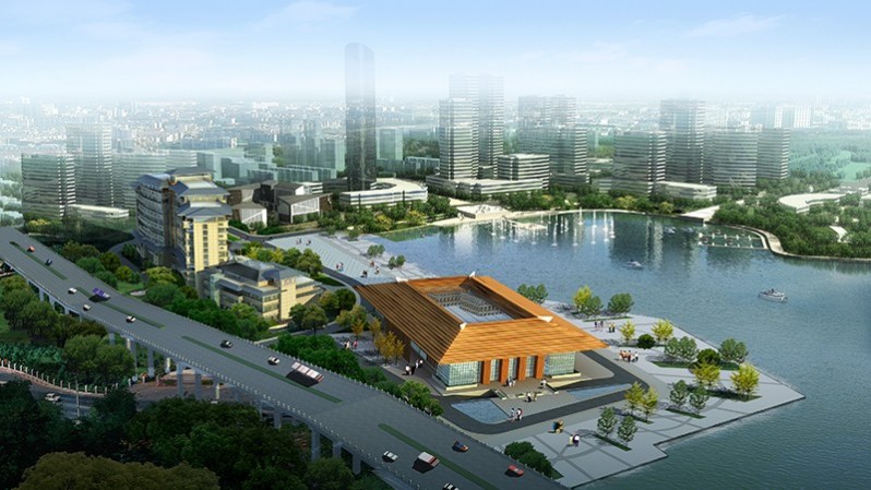 項目位于江蘇省揚州市,北臨文昌大橋,西臨京杭大運河,南臨湖濱規(guī)劃道路,東靠京杭路,是揚州廣陵新城“京杭之心”規(guī)劃區(qū)域內(nèi)重要的建筑。揚州市東部,北臨文昌大橋,西臨京杭大運河,南臨大湖,東靠京杭路。項目利用基地內(nèi)的多種自然條件和景觀優(yōu)勢,平面布置呈東西走向,沿南側(cè)水體弧線舒展布局,使景觀價值在每間客房得到充分的體現(xiàn),按照廣陵新城的規(guī)劃設(shè)計理念,建筑與湖心形成向心關(guān)系,體現(xiàn)出完整的的濱水空間,創(chuàng)造豐富的親水體驗。建筑立面風格,端莊氣派,立面設(shè)計成三段式的處理,建筑底部為石材面飾,彰顯氣派厚重感;中間為虛實對比的分層條窗,頂部為簡約的坡屋頂,整體建筑極具現(xiàn)代感又不失對地域文化的詮釋。